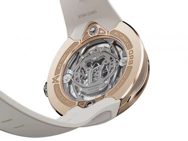 The Orb, introduced in 2024, refined this vision further. Beneath its 41 mm case lies a peripheral rotor visible from the dial side, set with a 2mm brilliant-cut diamond. Using the crown, the wearer can switch between automatic winding—freeing the diamond-set rotor to orbit the movement—or manual mode, which locks the diamond neatly at 12 o’clock. Running at the same 3 Hz but with a 60-hour power reserve, the Orb retailed at CHF 150,000 in titanium and CHF 180,000 in rose gold.